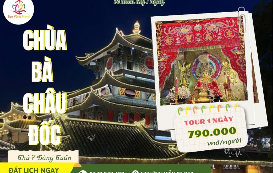 Viếng Miếu Bà Chúa Xứ - Tọa lạc ngay dưới chân núi Sam, với sự linh thiêng và ứng nghiệm, cầu được ước thấy, hàng năm Miến Bà thu hút hàng triệu lượt khách tham quan, là địa điểm du lịch tâm linh hấp dẫn.